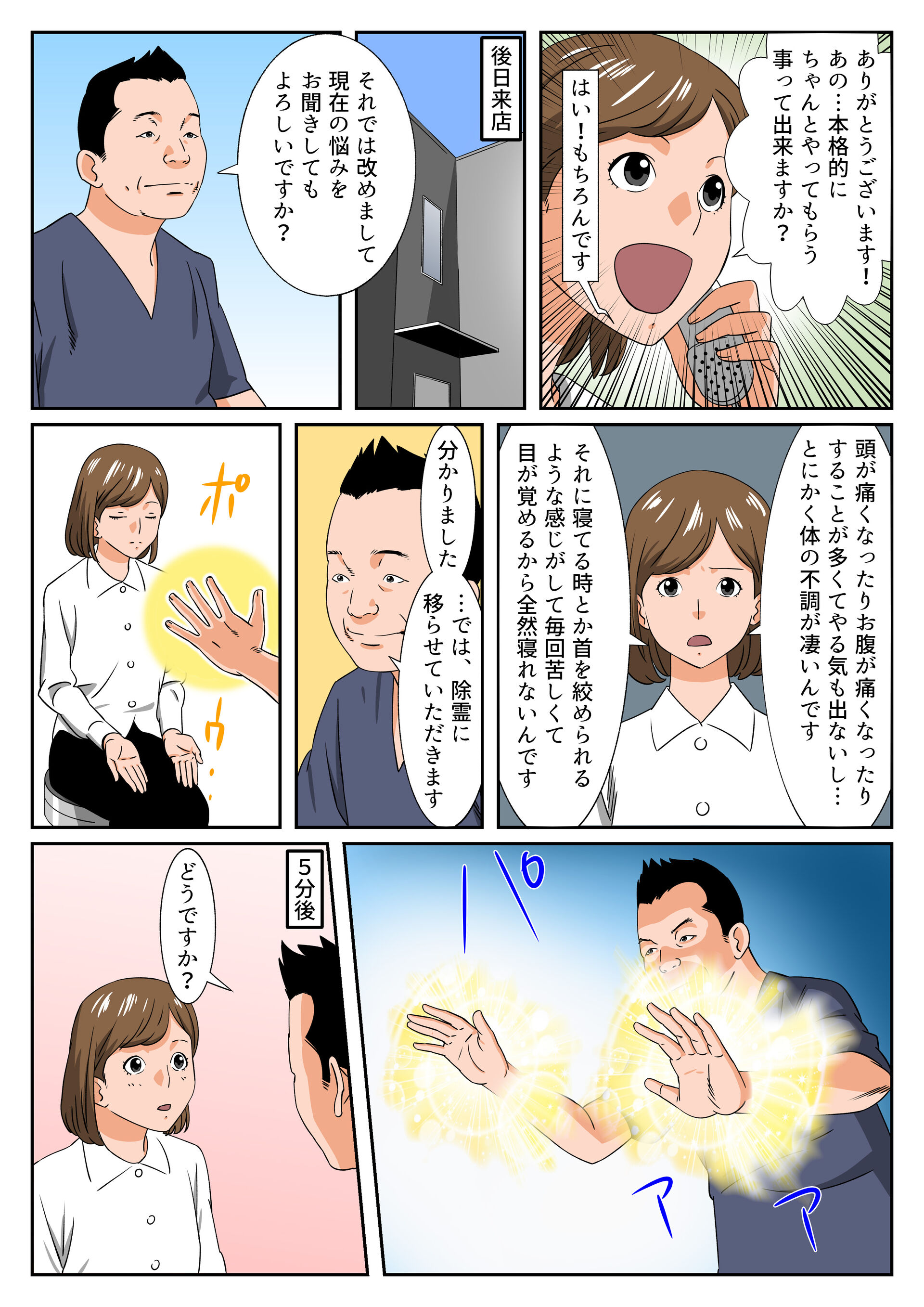 「 除霊は成功しました。お客さんの身体から抜けていきましたよ 」